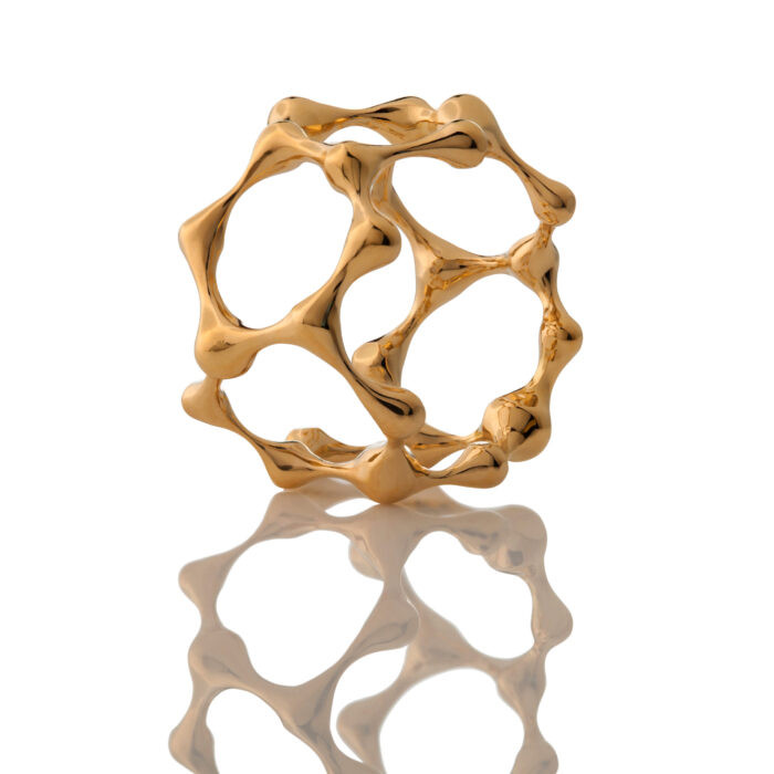 Inspired by people’s uniqueness from fingertips to toes determined by the DNA. Keep differing from the rest with our gold DNA Atomic Hex Ring with an elegant and minimalistic design.
