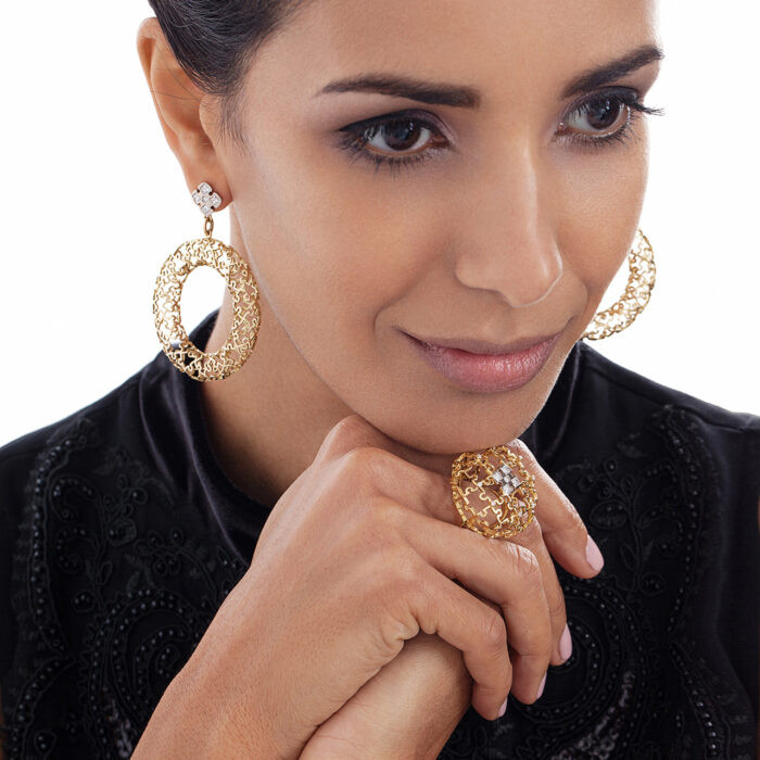 Perfection is simplicity. Discover yourself as perfect as you are with our Puzzle Bagel Earrings made on natural gold and diamonds.